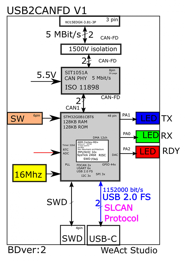 WeAct USB2CANFD Converter — адаптер USB-CANFD/CAN2.0 с функцией анализа шины CAN